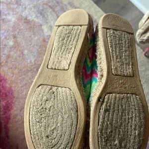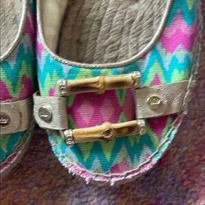 Step out in style with these vibrant women's flats featuring a colorful zigzag pattern. Perfect for adding a pop of color to any outfit.