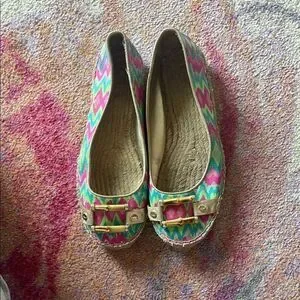 Colorful Zigzag Patterned Women's Flats by Elaine Turner.
