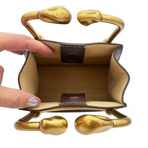A sculptural mini bag in smooth leather with a curved golden top handle.