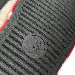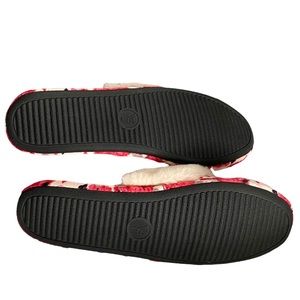 Victoria’s Secret Signature Satin rose floral slippers with faux fur trim. Rubber sole. EUC