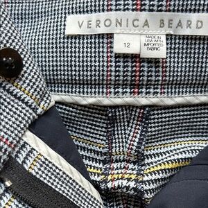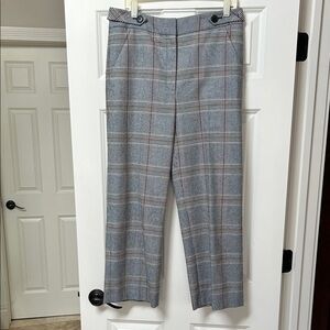 Tailored Veronica Beard dress pants. Navy plaid pattern with thin red windowpane design. cropped leg for a refined look. Measurements in photos. Great condition. Size 12