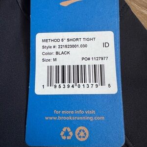 Brooks Black High-Rise Bike Shorts with Side Pockets METHOD 5" SHORT TIGHT nwt