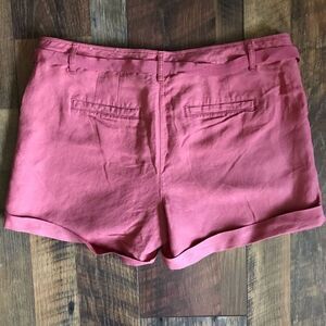 Ann Taylor Loft original salmon coral cuffed Linen Rayon blend Shorts Size 6 with belt