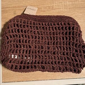 Free People purse raffia Sand Bound Chocolate clutch NEW hinges open