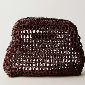 Free People purse raffia Sand Bound Chocolate clutch NEW hinge brown