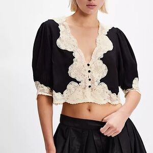 Free People White Elle Cutwork Top