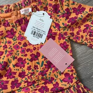 Orange, pink, and green floral print chiffon