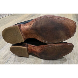 Pre-owned and well cared for with normal wear from use. Soles show typical wear but still have plenty of life. Leather uppers remain in good shape with attractive natural creasing from genuine ostrich leather. Please review photos for overall condition.