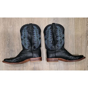 Lucchese 2000 Full Quill Ostrich Cowboy Boots Black Square Toe Men’s 9 D USA