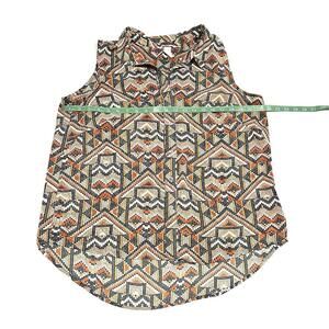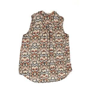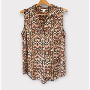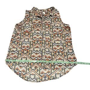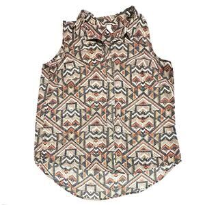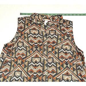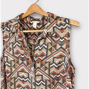 H&M Wonens Blouse Top Button Up Sleeveless Geometric Pattern Multicolor Size 12
