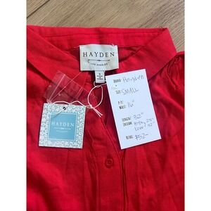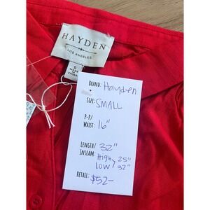 Hayden Los Angeles Red Linen Tiered High-Low Sleeveless Button Front Dress x123