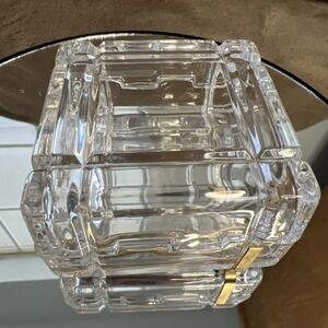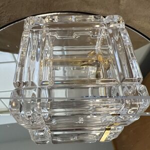 Vintage Glass Cut Jewelry Trinket Box With Gold Bow On Top. Made in Italy