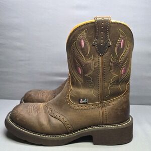 Justin Gypsy Gemma Boots Women's Size 9B Brown Shetland Buffalo Leather GY9526