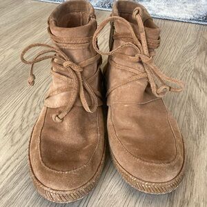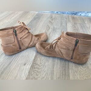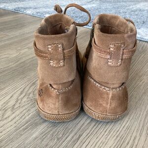 Stylish chestnut ankle booties by UGG. Soft suede with cozy lining. Ideal for casual wear.