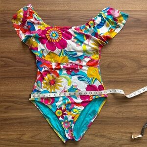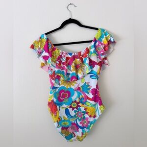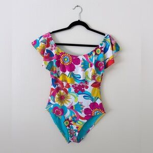 Trina Turk Women’s Designer Floral Off The Shoulder Ruffle/Flutter Sleeve One-Piece Swimsuit Size S/XS (2-4)