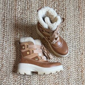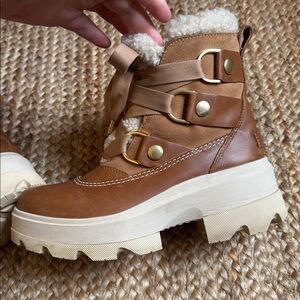 Sorel US 8 Joan FRWD Cozy Boot Lug Sole Leather Shearling Chunky