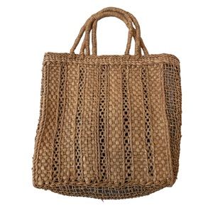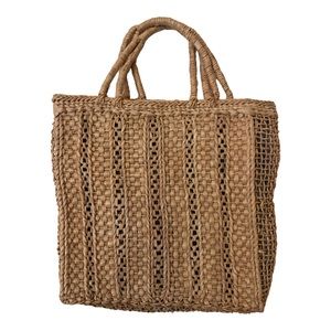 J. Crew Straw Tote Bag With Blue Lining