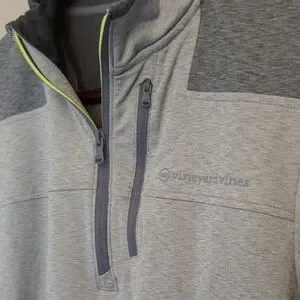 Excellent condition Vineyard Vines Performance quarter-zip pullover. Heathered fabric with darker shoulder panels. Zippered chest pocket. Perfect for golf, vacation, or casual wear.