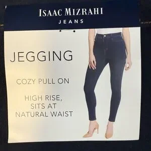 Isaac Mizrahi Jeans high rise pull-on jeggings in dark wash denim. Comfortable stretchy pull-on style with a flattering skinny fit.