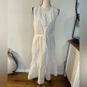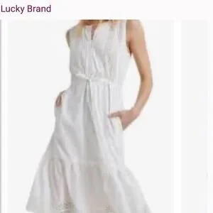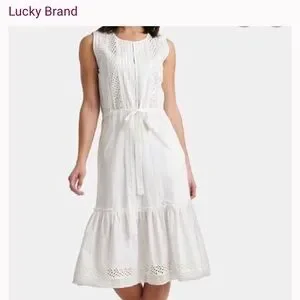 Lucky Brand White Eyelet Tie-Waist Midi Dress