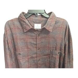 Mutual Weave 2XLT Shirt Lightweight Flannel Plum Onyx Gray Check Plaid Pocket