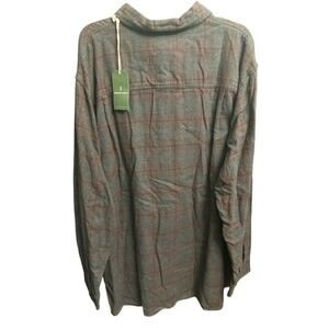 The Mutual Weave 2XLT Shirt is a stylish and versatile flannel shirt perfect for winter and fall. This shirt features a plum and gray check plaid pattern, a collared neckline with a button closure, and a long sleeve design. The lightweight fabric makes it easy to care for and ideal for travel or casual occasions. The shirt also includes a pocket accent, adding a touch of personalization to the classic and preppy style. With its regular fit and big & tall size, this shirt is a must-have for any man looking for a versatile and comfortable addition to their wardrobe. The attached price tag is $48.