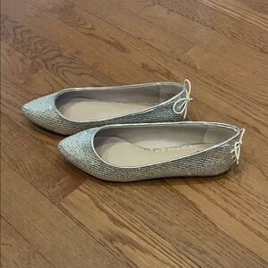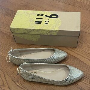 Shimmer with these dazzling silver flats from Mix No. 6. Ideal for adding sparkle to any outfit. Box can be included, see pictures to note handwritten descriptions,