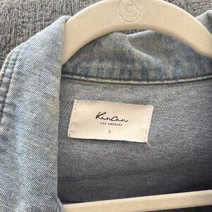 Can fit S, M, L for an oversized look or tighter. Trendy KanCan denim jacket. Light blue with distressed accents. Perfect for casual outings.
