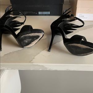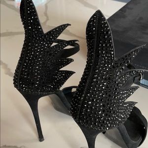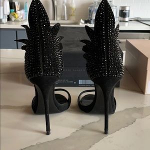 Step out in style with these stunning black studded heels from Giuseppe Zanotti. Perfect for any occasion, these shoes offer both elegance and edge.