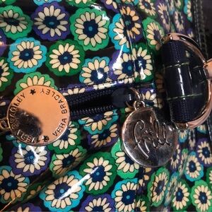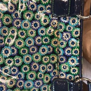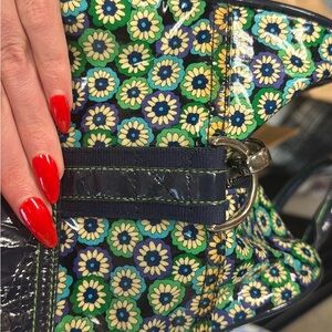 Chic travel bag with vibrant green and yellow floral design. Features sturdy handles and adjustable strap. Ideal for stylish journeys.