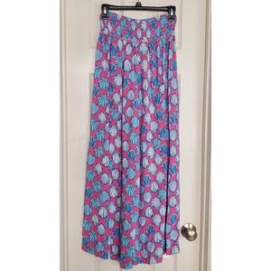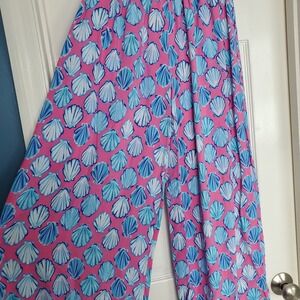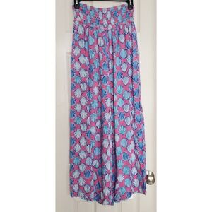 Simply Southern Pink Blue Seashell Smocked Wide Leg Palazzo Pants One Size O/S