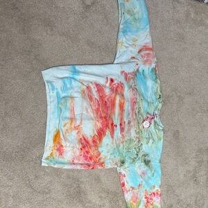 Soft hand dyed sweatshirt with vibrant blended hues. Relaxed long sleeve silhouette. Lightweight and easy to wear. Bright, painterly color placement for a casual look.