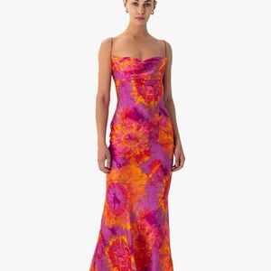 Ronny Kobo Collection Pink and Orange Tie-Dye Cowl Slip Maxi Dress. 🌸🛳️🍹🌴