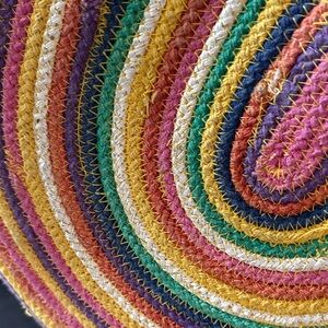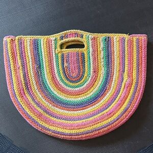 Colorful Rainbow Half-Moon Woven Straw Tote Fabulous MJ NY