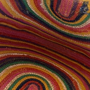 Handwoven half-moon tote with vibrant multicolor stripes. Soft structured body with built-in handles. Lightweight and perfect for spring and summer outfits. made in India.