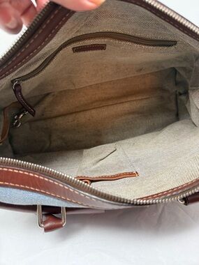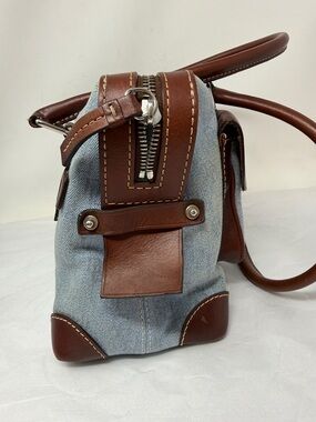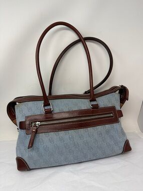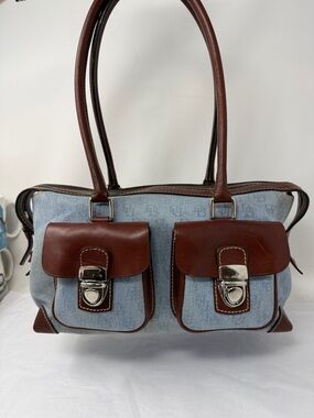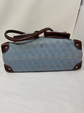Dooney & Bourke Denim Monogram Shoulder Bag Brown Leather Trim Y2K Vintage