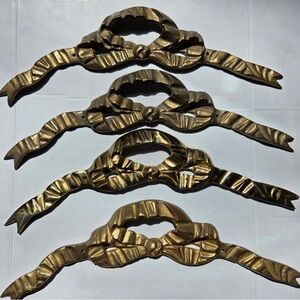 Set Of 4 Solid Brass Ribbon Bows Vintage 14 1/2” Frame Decorative Wall Decor