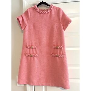 Tuckernuck Pink Tweed Braided Trim Jackie Dress Short Sleeve Gold Button M