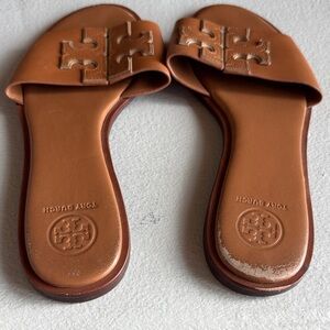 Tory Burch Tan Leather Slide Sandals