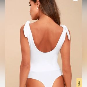 Lulus Pretty Pleased White Tie-Strap Bodysuit