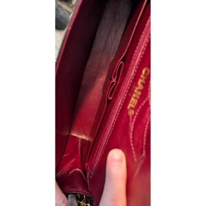 • Burgundy leather lining • Embossed CC logo • "CHANEL PARIS" stamp on interior flap