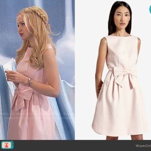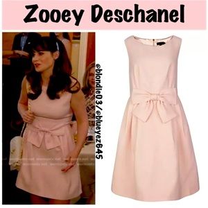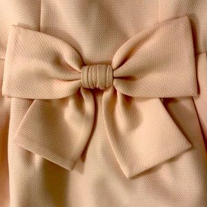 Elegant baby pink midi dress with a bow detail. Sleeveless.