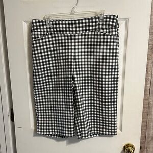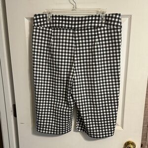 Bermuda shorts in a black and white gingham pattern. Comfortable mid-rise waistband with subtle front seam detail. Lightweight, structured fabric for everyday wear. Easy to pair with tees or blouses. Front pockets, very good condition, waist 17” inseam 13.5”