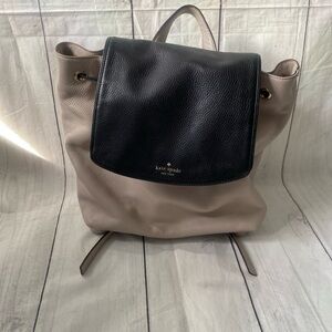 Kate Spade Black & Taupe Pebble Leather Backpack Medium.