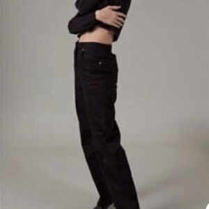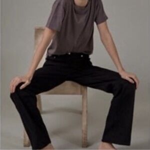 Thakoon high rise jeans in a classic black wash. Clean, streamlined silhouette with subtle flare at the hem. Smooth front and minimal detailing for easy styling.