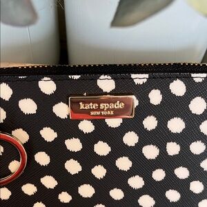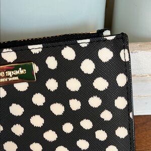 Never used! The kate spade laurel way printed musical dot card holder is a stylish and functional accessory for women. This card wallet features a black and white musical dot pattern, staying true to the kate spade brand's chic aesthetic. It includes slots for credit cards, as well as a convenient zipper pouch for storing coins. Perfect for on-the-go use, this card holder is a compact and fashionable way to keep your essentials organized.