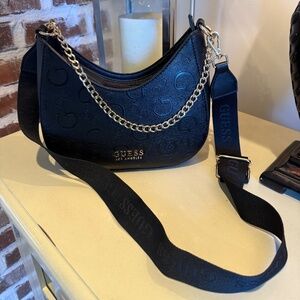 GUESS Palmillas Logo Crescent Black Crossbody Bag Chain & Long Strap - NWOT