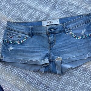 Hollister Blue Denim Beaded Low-Rise Shorts