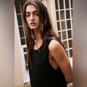 So simple and sleeveless, this mini from our free-est collection is featured in a soft fabrication with an A-line hem and ribbed knit trim.