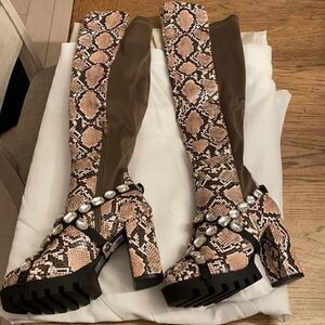 WILD DIVA SNAKESKIN MOTIF BOOTS. NEW